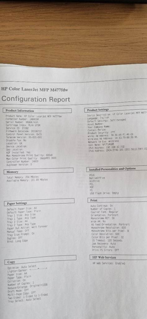 Selling HP LJ Pro MFP M477FDW all in one colour printer practically in brand new condition.