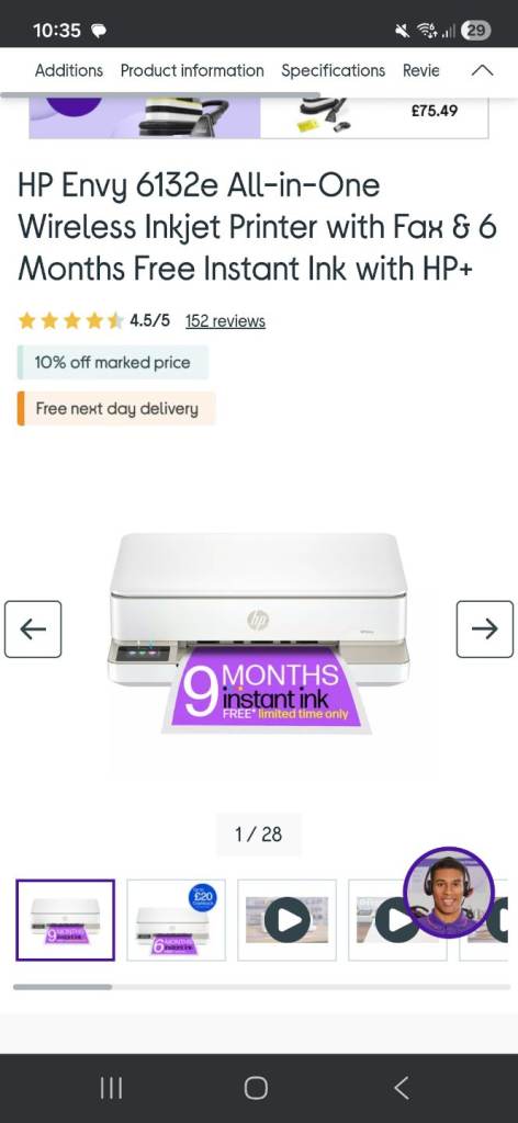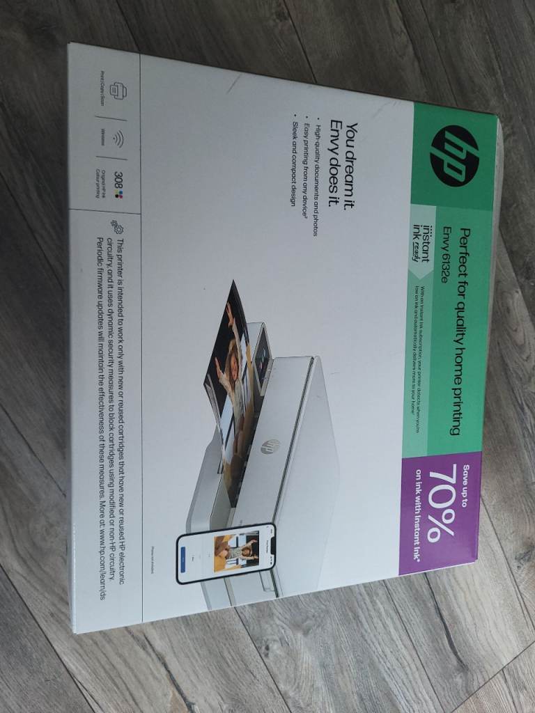 Hp envy 6132e wireless printer / fax. Brand new in box with black and colour ink cartridges. On curry's website for full description
