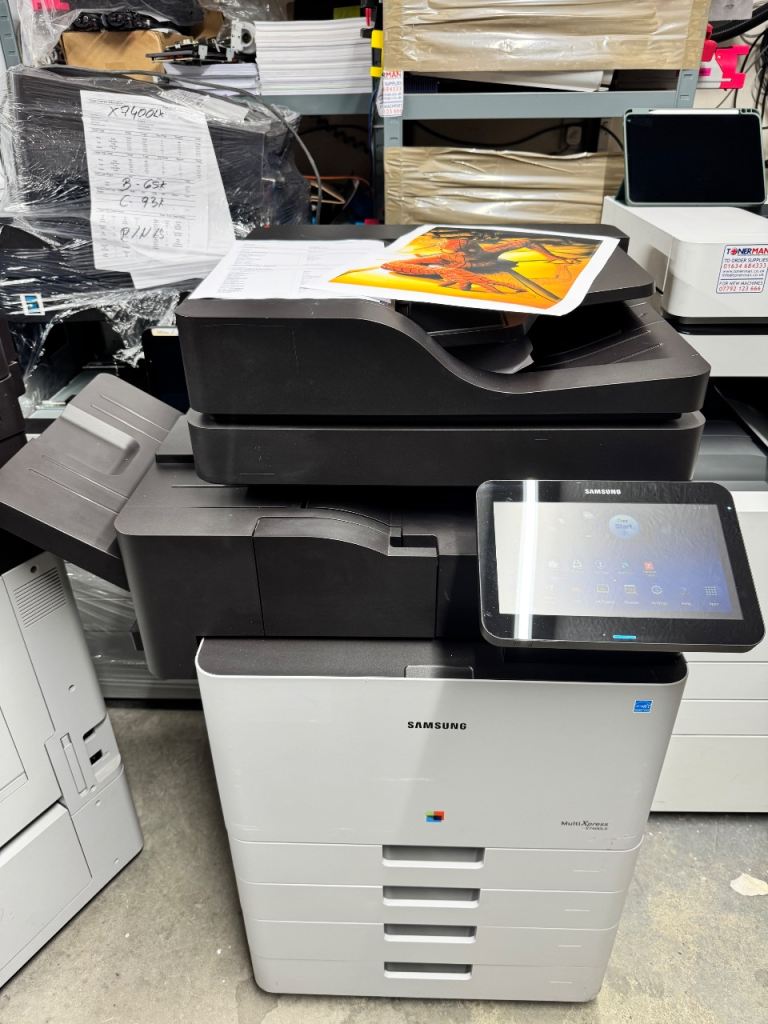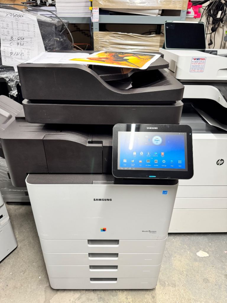 I have for sale, one very nice Samsung X7400LX PHOTOCOPIER PRINTER SCANNER IN PERFECT WORKING ORDER AND VERY LOW COPY COUNT MACHINE HAS STAPLE FINISHING AUTOMATIC DUPLEX AND DUPLEX SCANNING 40 COPIES OF IT. THIS IS A SERIOUS MACHINE ABSOLUTELY A1 CONDITION FREE LOCAL DELIVERY. PLEASE CONTACT ME FOR FURTHER DETAIL DETAILS