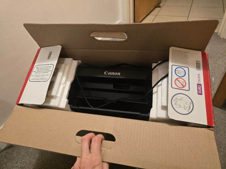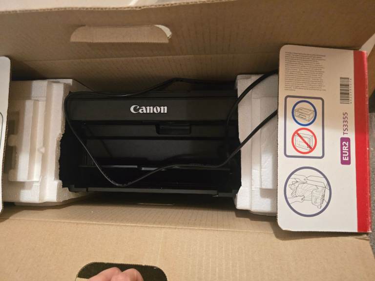 Used canon printer, good condition but low on ink - can get cheap versions in supermarkets. Includes plain white paper if wanted.