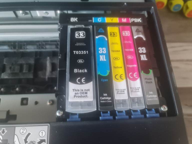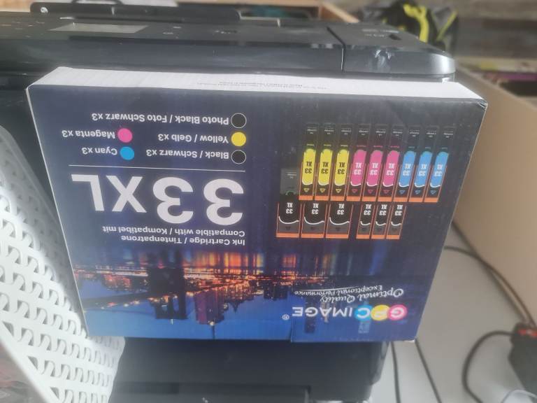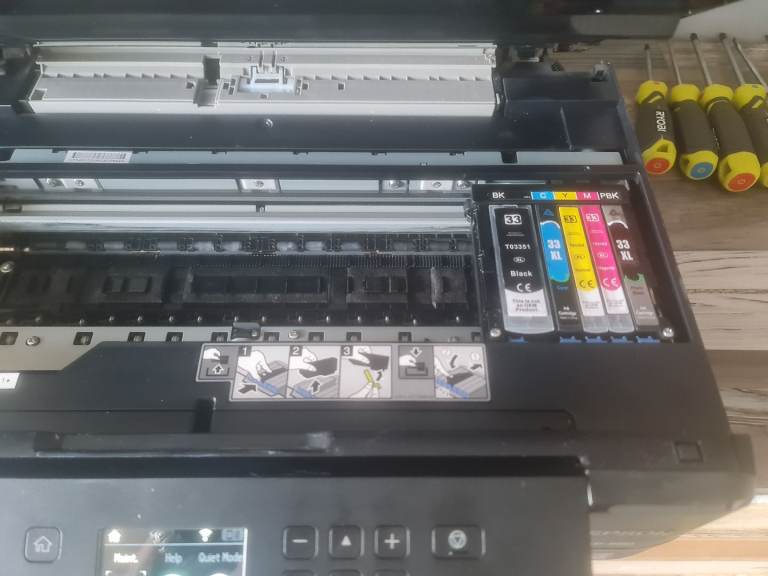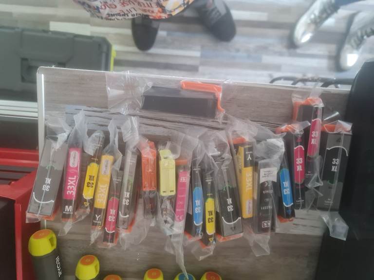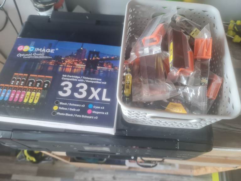 Epsom printer in perfect working order and with loads of ink cartridges with it. Printer got paint drops and bit scratches but don't affect the quality of pictures. Prints upto A3 paper. And photos come out great... see pics.... asking price for the lot is 40 pounds. Can be seen working. Pick up only from NR2 2SF Vauxhall Street.