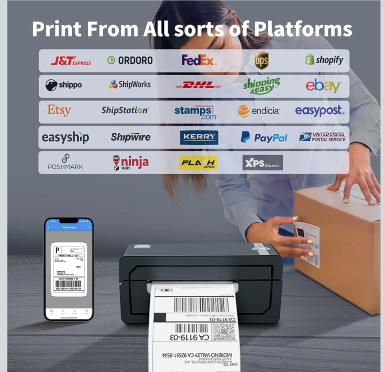 JADENS Bluetooth Thermal Label Printer, 4x6 Shipping Label Printer, Compatible with Android, iPhone, Windows & Mac, Widely Used for Hermes, Royal Mail, Amazon, Shopify, Ebay