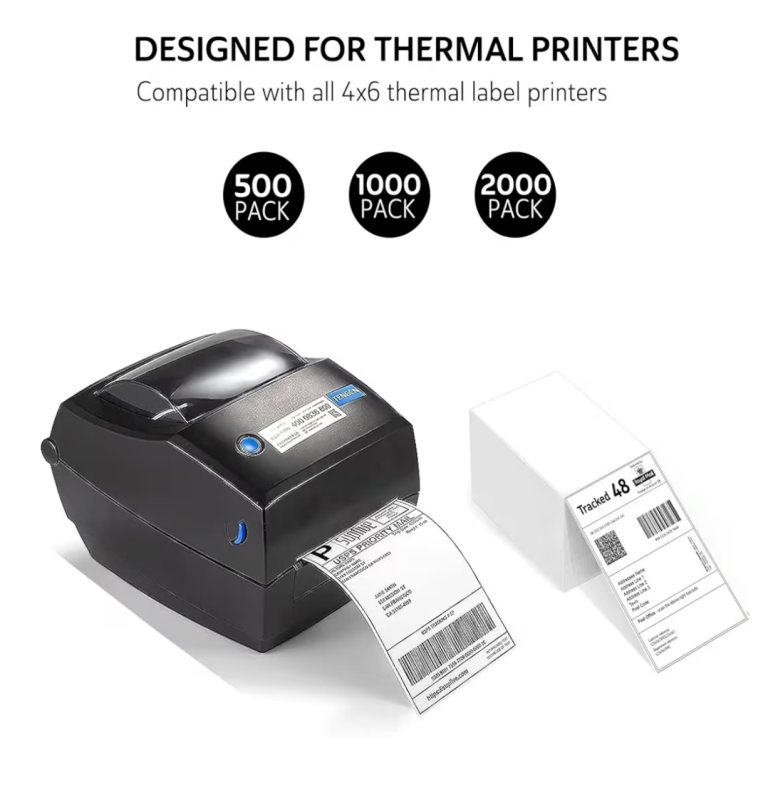Straame - Thermal Shipping Barcode Labels - 4x6 Inch - Fanfold Permanent Adhesive & Commercial Grade for Direct Thermal Printer - Compatible with Amazon, Royal Mail, FedEx - White (Pack of 2000)