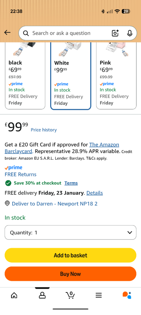 Boxed As new Superb Thermal Printer No Ink Necessary Effortlessly Bluetooth From Phone No Knowledge Needed
