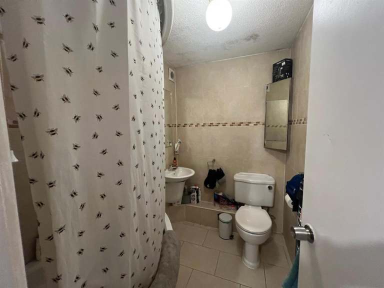 The bathroom is thoughtfully designed, ensuring functionality while maintaining a pleasant atmosphere. Built in 1975, this flat has a character that reflects its era, yet it remains a blank canvas for those looking to add their personal touch.