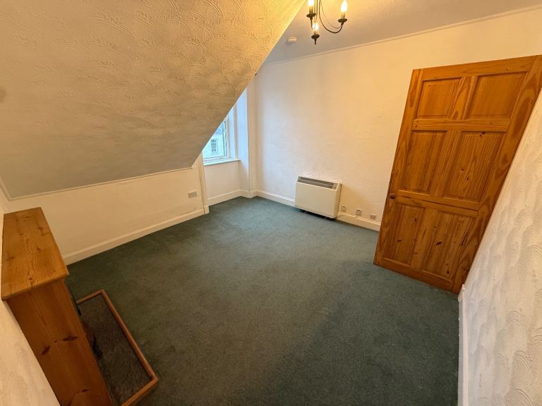There is one double bedroom and one single bedroom, large livingroom and kitchen, good sized bathroom and plenty of storage space. There is a shared garden to the rear of building as well as a section privately belonging to the flat, spacious store/shed, large loft space, double glazing, electric heating.