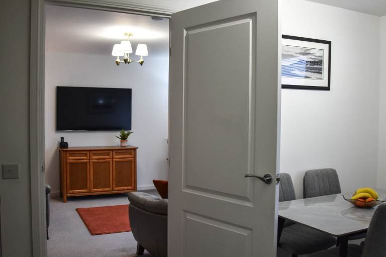 Lounge, Dining Kitchen, 1 Bedroom with Ensuite Shower Room, Bathroom with Shower above Bath and large Walk in Cupboard with Washer/Dryer.