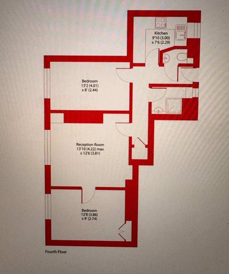 It’s 4th floor with separate WC, bathroom, approximately 600sq ft/ 56 sq m, it’s another 104 years lease, easy access to Central London, ideal for investment.