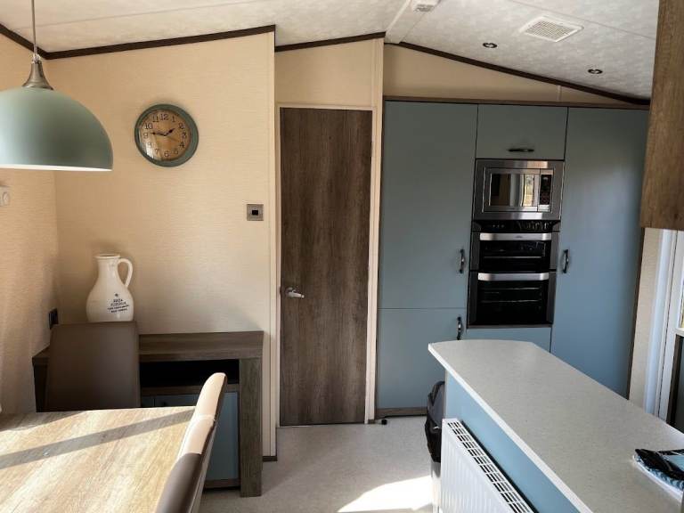 ✅ Stylish duck egg blue kitchen with 5-ring burner, oven, microwave, fridge freezer & dishwasher
