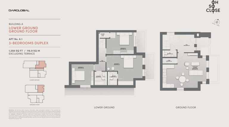 - Spacious living area on the ground floor with bedrooms on the lower ground