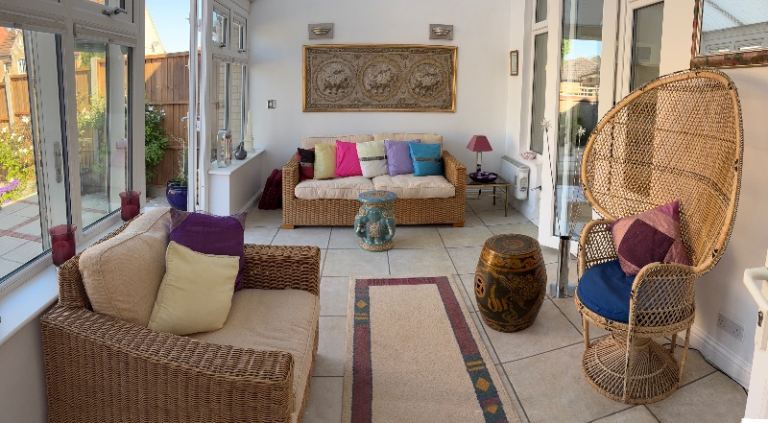 it has a conservatory, a large garden, garage and drive way with room for 2 cars.