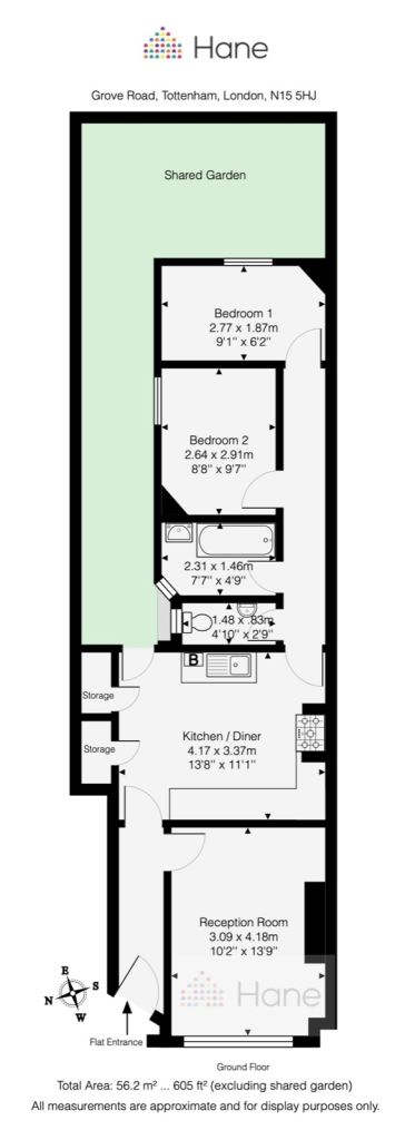 Hane Estate Agents offer a 2 double bedroom ground floor flat with access to a shared rear garden.