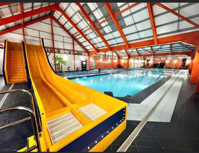 4 heated indoor and outdoor pools with flume and splash tap 🏊🏻♀️