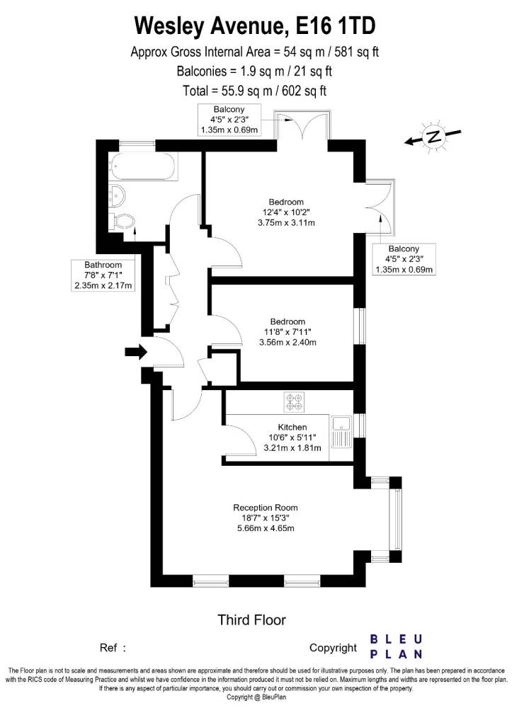 Size 54m2 / 581 sq ft