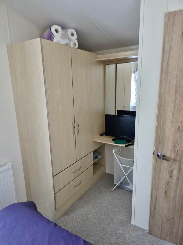 The Willerby boasts two additional bedrooms, ideal for guests or extra storage space during extended stays. Each bedroom is equipped with two single beds, a bedside table, a wardrobe, and overhead cupboards. There is also ample space under the beds for added storage.