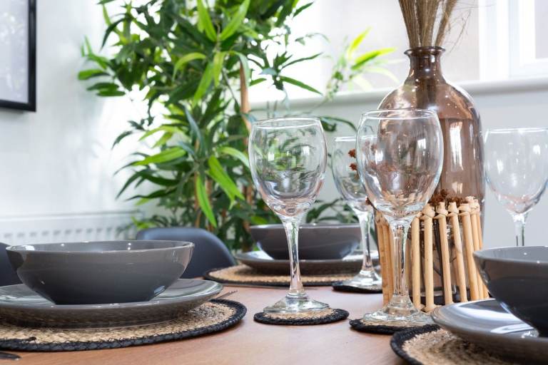 All kitchen utensils, cookware, bed linen, duvets, pillows and towels included