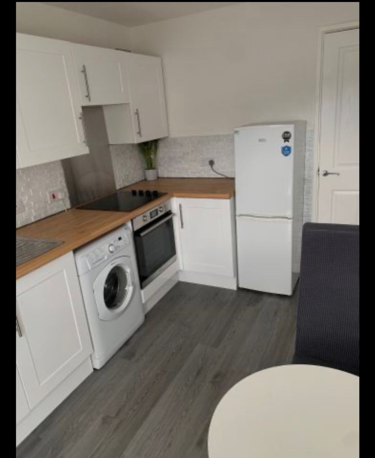 1 bedroom ground floor flat with own front and rear doors and 2 private gardens (not shared) for rent in Lanark Avenue Carmondean . Livingston . Unfurnished but hob,oven,fridge freezer, washing machine included . Perfectly situated for commuting to Edinburgh or Glasgow. Nicely decorated in neutral colours!. Livingston north train station, Morrisons Supermarket, Carmondean health centre , Pharmacy, Deans community high school (public swimming pool), primary schools , , nursery ,Saltire pub , Grand Central nightclub, Martial arts centre, Tanning studio, church , Takeaway , 24 hr petrol station , kwik fit all only minutes walking distance. Bus stop to the rear of the property . Double glazed, gas central heating. On street car park at the front of the property.Nice and clean , 2 large walk in cupboards , and 3 smaller so plenty space for storage etc .