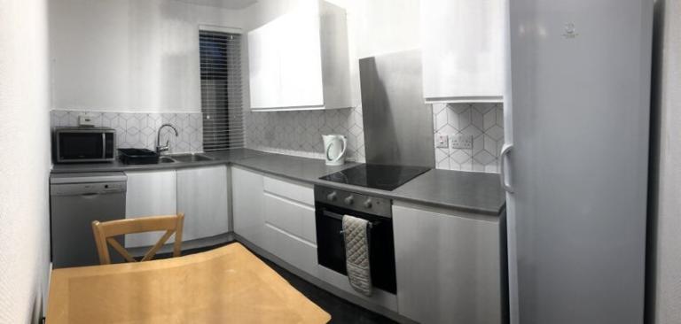 โข Clean kitchen with: โข Washing machine โข Oven + hob โข Microwave, kettle, toaster