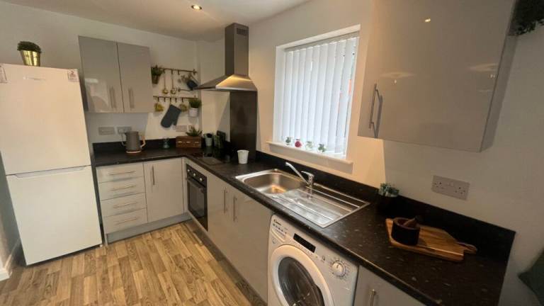 β’ Clean kitchen with: β’ Washing machine β’ Oven + hob β’ Microwave, kettle, toaster