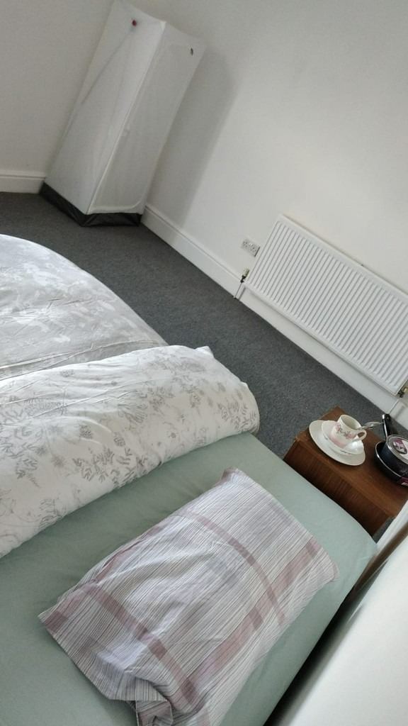 Flat on ground floor with good quality bed, wardrobe, chest of drawers.