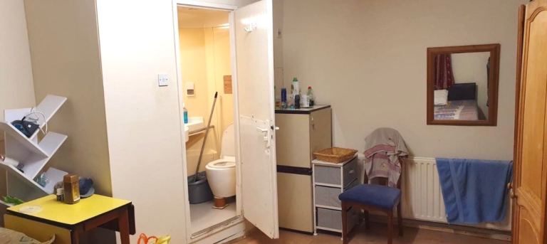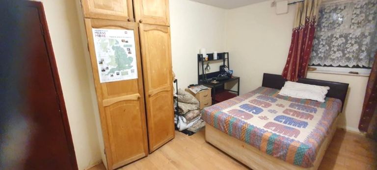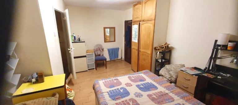 A spacious double room with a private en-suite bathroom and personal fridge is available to rent.