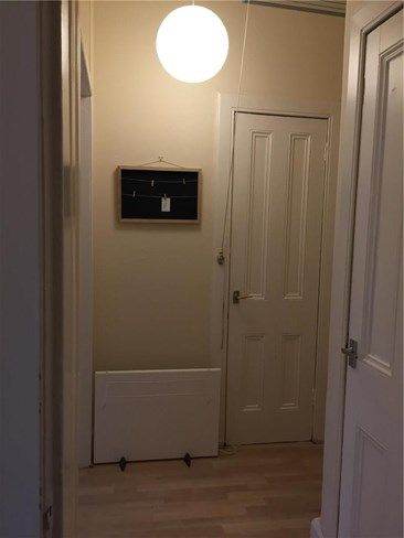 The 1st floor flat has one large double bedroom with lots of built-in wardrobe space, kitchen/Living room, separate toilet and shower, microwave, washing machine, fridge/freezer, toaster. Fully Furbished. The heating is electric, so there are no gas bills.