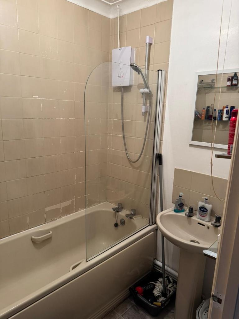 Bathroom - electric power shower and bath tub