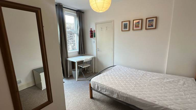 In a nice quiet street in Mutley. A short walk from Drake Circus, Plymouth University, Arts University Plymouth and Mutley Plain, from where regular buses connect with MARJON and Derriford Hospital.