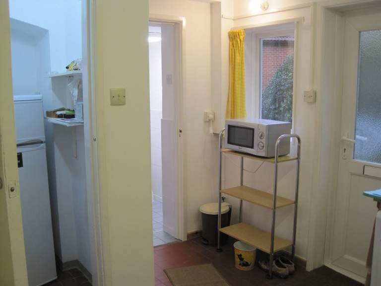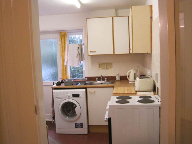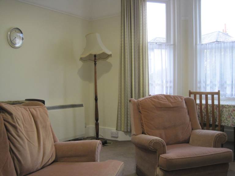 The flat is near the Central Station and Frances Gardens. It has a large lounge and a bedroom, a separate kitchen with walk-in larder and a shower room/toilet. There is a small garden and parking for one car. Hot water, sewerage and water charges are included. The Council tax band is A. The deposit is £500. References are required. The flat is available to rent for six months with the possibility of an extension.