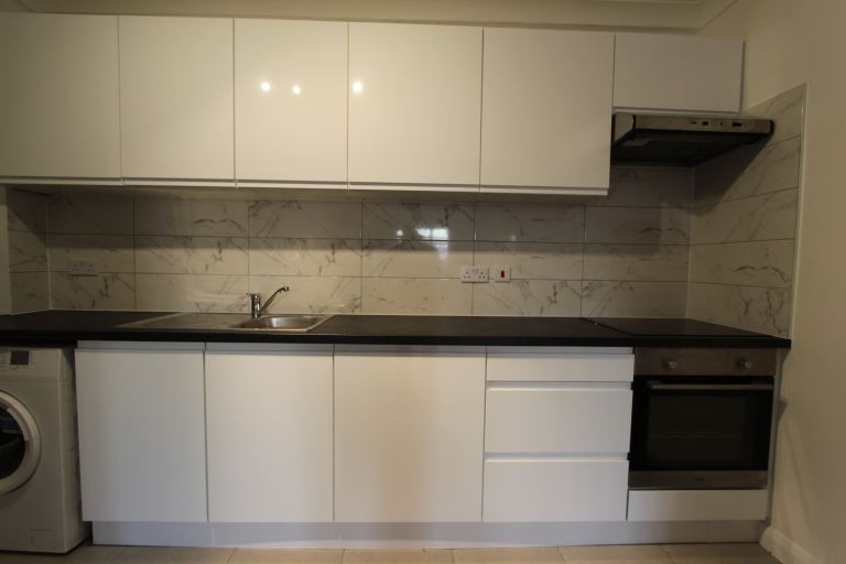 Fully fitted kitchen with washing machine, oven, hob and fridge freezer