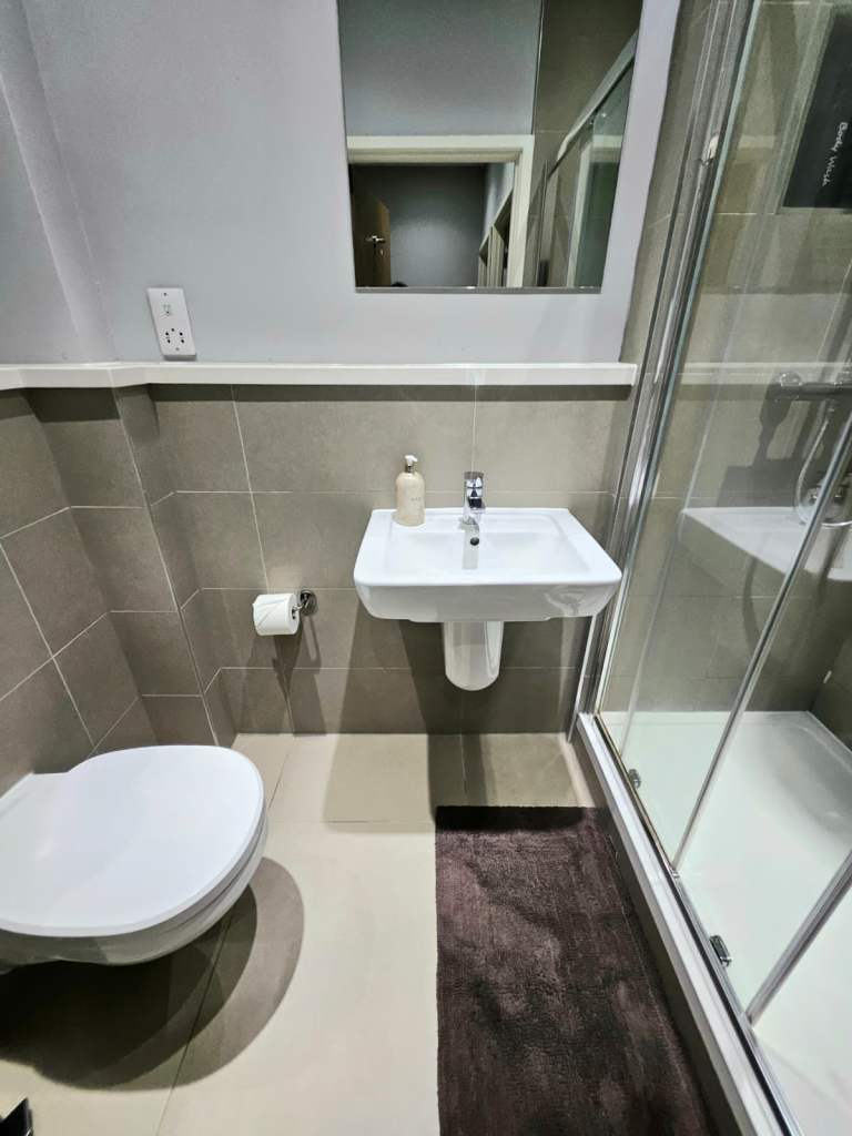 The apartment is now available for rent, with every essential offering a convenient living space for those seeking comfort and accessibility. The apartment features a modern bathroom, providing all the essentials for a comfortable living.