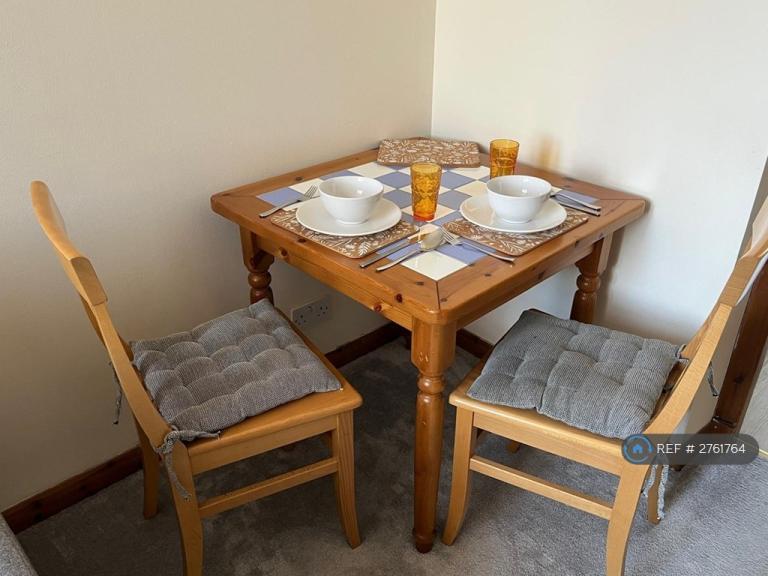 Prepare your favourite meals in the well-equipped kitchen, which features essential appliances such as an oven, hob, washing machine, tumble dryer, fridge freezer, microwave, kettle, and toaster. The kitchen comes fully stocked with all the necessary crockery and cutlery, making dining in a delightful experience.