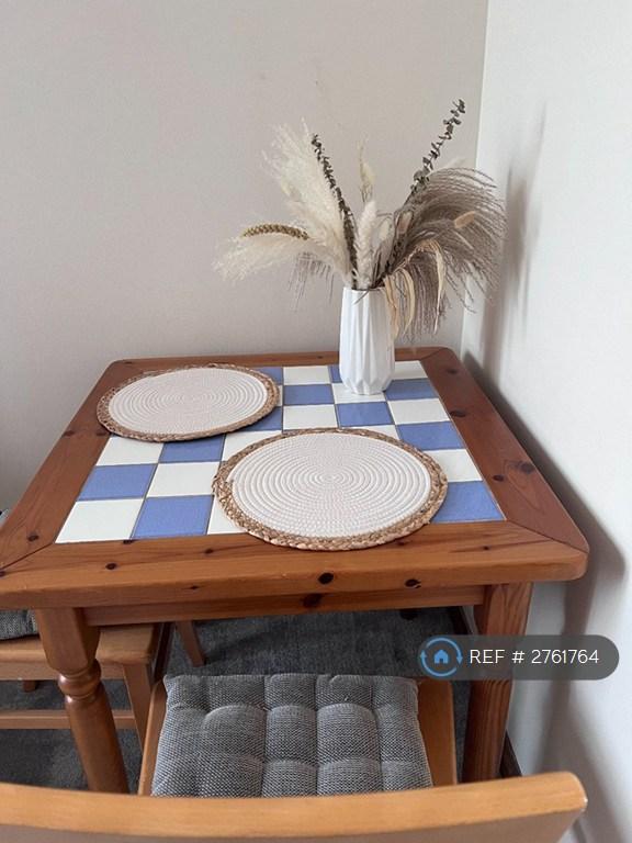 This fully furnished flat is meticulously designed to a high standard, ensuring both style and functionality. The spacious living room is tastefully appointed with a cosy sofa, a sleek TV unit, a dining table for two, and comfortable chairs, providing an ideal setting for relaxation and entertainment. A dedicated computer desk allows for a convenient workspace, catering to your professional needs.