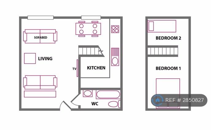 Suitable only for a couple sharing or single occupancy. Unsuitable for 2 friends sharing due to open plan layout and linked bedrooms layout.