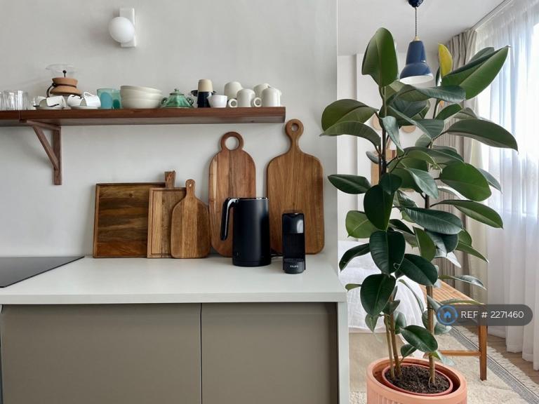 A bright, recently refurbished large studio apartment in the heart of Belsize Park, is perfect for a single person or couple and is moments away from Belsize Park tube Available from 1st February 2026 to 30th April 2026. station and the surrounding Hampstead/Primrose Hill area. The apartment is tastefully styled with open plan living space including dining and seating areas and a fully integrated and well equipped kitchen benefitting from lots of natural light. The separate sleeping area is a cosy and contemporary space and the tiled bathroom has a bath tub with over head shower.