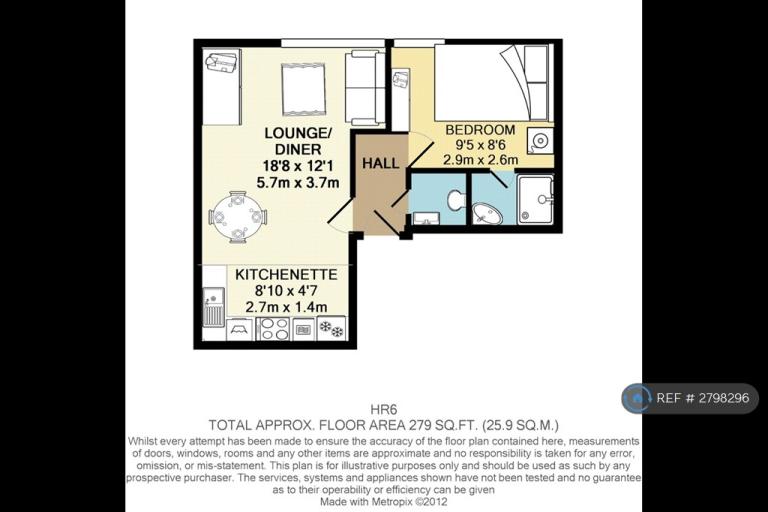 Approx. Floor Area - 279 Sq Ft / 26 Sq M