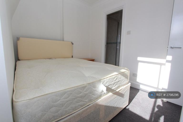Double bed, bedside table, radiator, net curtain, green blind, spotlights, 6 cupboards (clothes rail inside cupboard), Tel point.