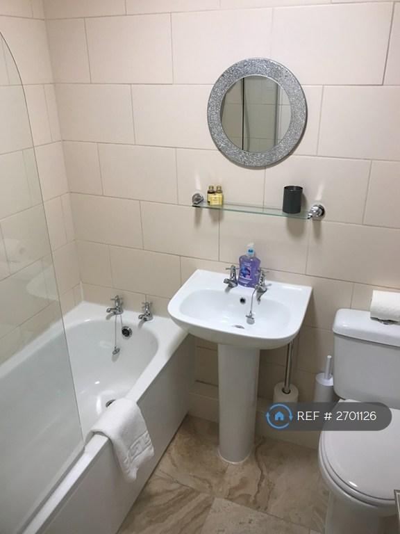 The kitchen is fully fitted and has a washing machine, oven, hob and microwave, fridge and all the crockery and cutlery, glasses etc are available to use. In the hallway is a study area with desk and chair. There is a bathroom with bath and shower over.
