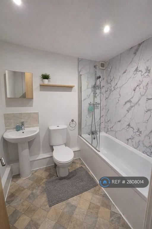 The bedroom is thoughtfully arranged, offering a calm and comfortable retreat. A modern bathroom suite completes the property, featuring a full-size bath with shower over, easy maintenance tiling, and clean, neutral finishes.