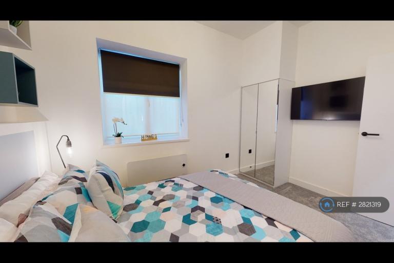 The contemporary kitchen boasts fully integrated appliances, while the marbleâtiled bathroom offers a spaâlike feel with a rainfall shower and LED mirror. The serene double bedroom includes premium furnishings and a large flatâscreen TV for added indulgence.