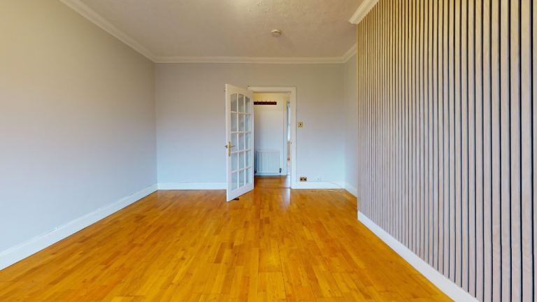 This 1-bedroom flat in Aberdeen offers a well-designed living space of 527 sq. ft. The property boasts a spacious primary bedroom of 183 sq. ft., complemented by a bathroom. The interior is characterized by bright, neutral walls and warm wooden floors throughout, creating a cohesive and inviting atmosphere.