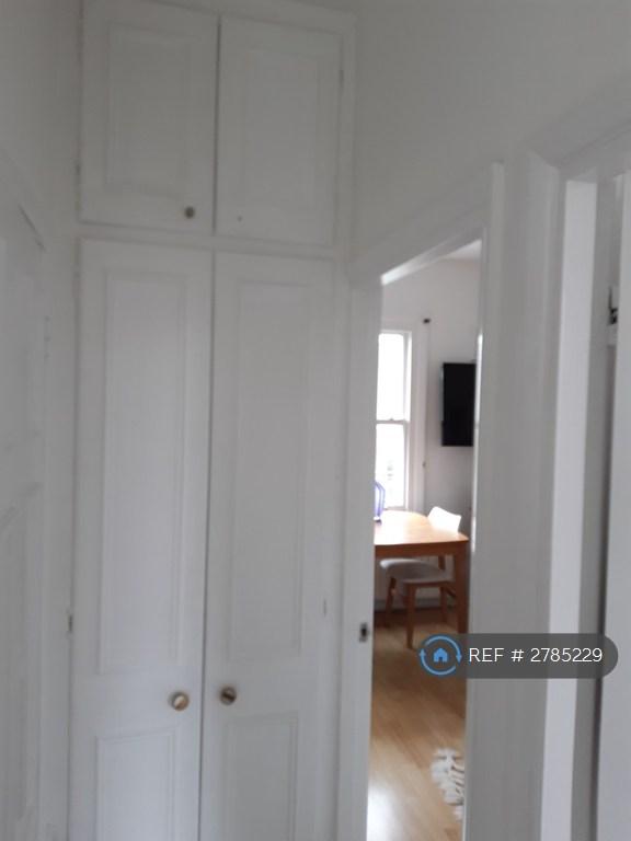 The property is a perfect home for couples or single professionals. There is an entrance staircase with room for shoes and coats. The bedroom is at the back of the property enjoying leafy views of adjoining gardens and trees. The bedroom includes a double bed and mattress, in excellent condition as well as ample storage cupboard space. The bathroom has a toilet, sink and shower over a bath.