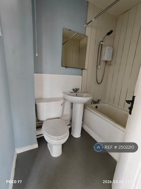 One bedroom flat with electric bath shower, separate kitchen with washing machine and electric cooker. Unfurnished. Clean and tidy. Electric heaters. No gas.