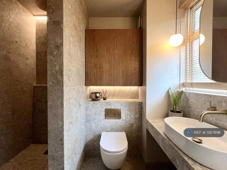 Then we have the ultra chic, fully tiled shower room complete with walk in rain shower and more under floor heating - even in the shower! - giving a boutique hotel vibe.