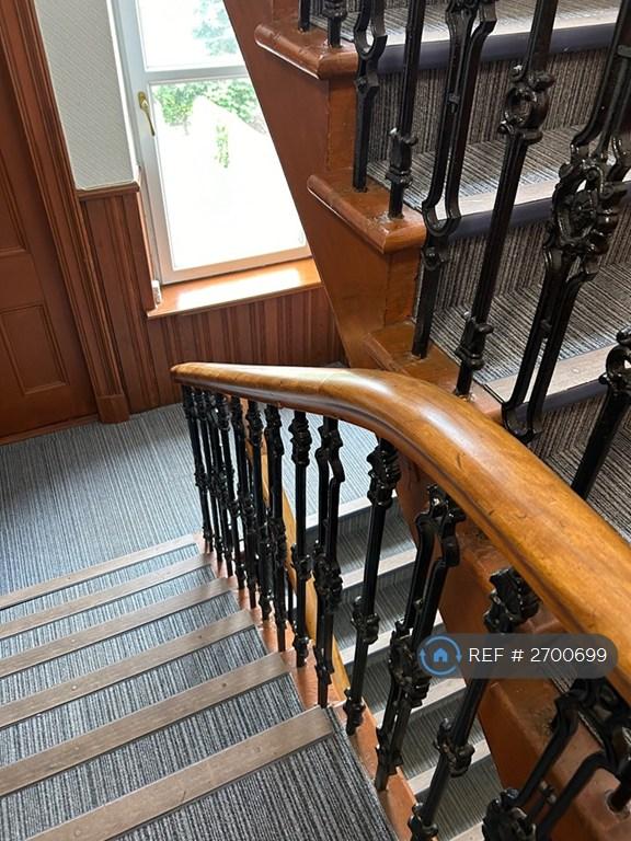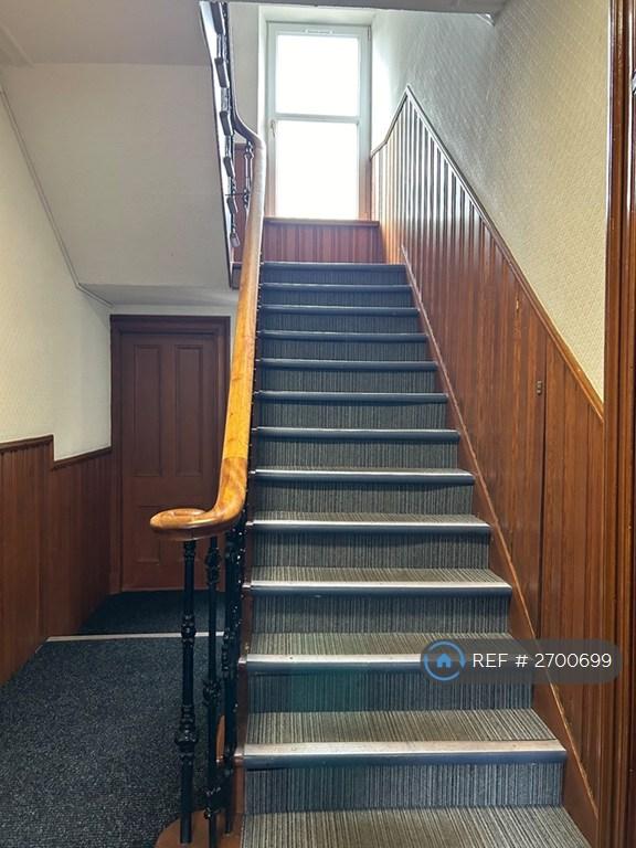 Tidy common entrance hallway - cleaned and maintained by landlord at no cost to tenants.