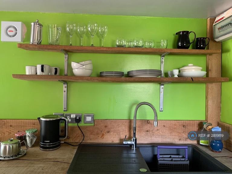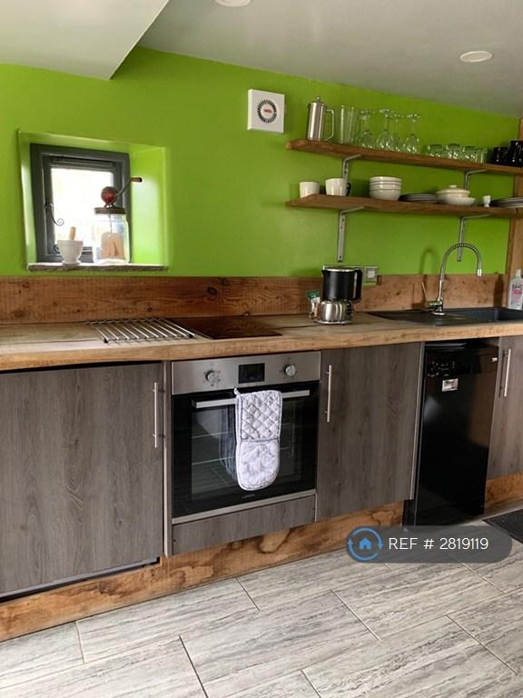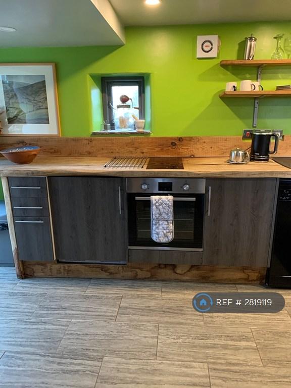 Handbuilt kitchen with fridge, dishwasher, electric oven and seperate hob.
