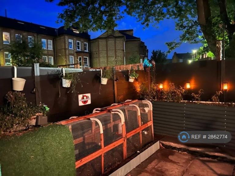 The flat also has a peaceful garden, which is also home to 2 rescue chickens (in their run) and gives the place a calm, unusual feel for London.