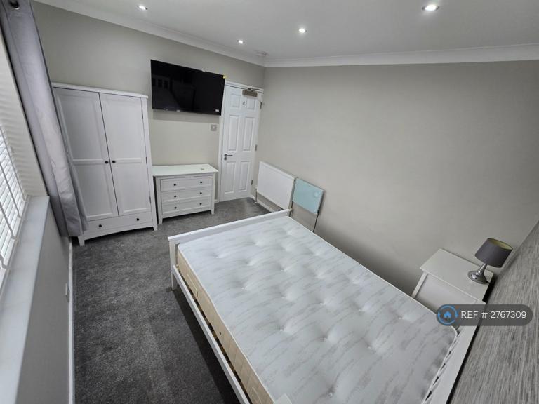 Furnished with: double bed, mattress, wardrobe, chest of drawers, heater, and Smart TV.