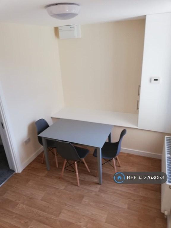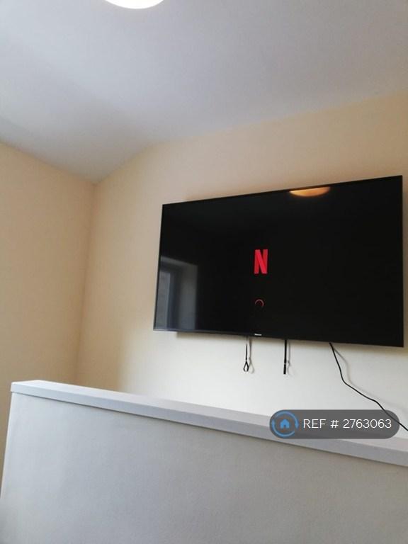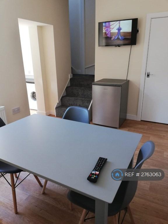 The house includes a fitted kitchen with modern appliances and a spacious shared dining room suitable for three housemates, furnished with a six seat dining table, TV unit, and wall mounted widescreen TV. In addition, there is a separate TV room, allowing residents to relax and watch television without disturbance from the rest of the house.