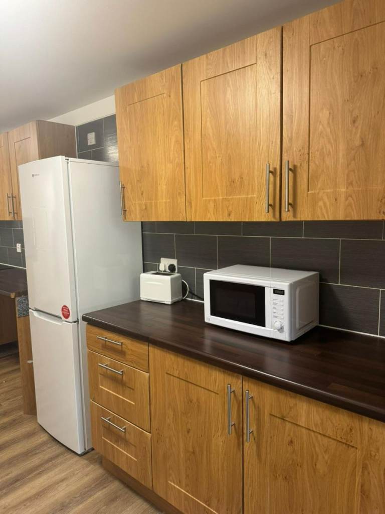 - Shared kitchen - With Hob, oven, Fridge /freezer, cabinets and a dining area with chairs.